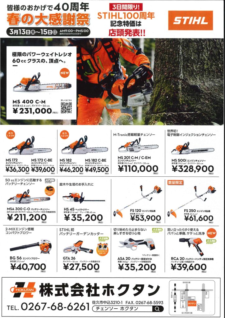 長野県佐久市でチェーンソー、薪割機など林業機械・草刈り機や農機具など機械の販売・修理なら株式会社ホクタンにお任せください。