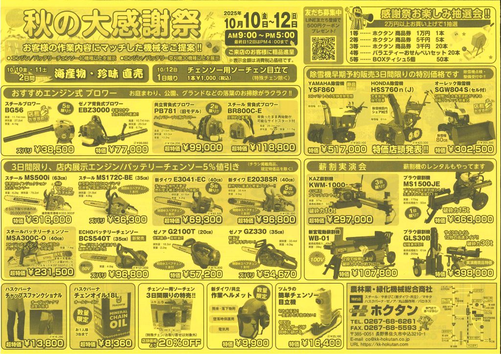 秋の大感謝祭を開催します!