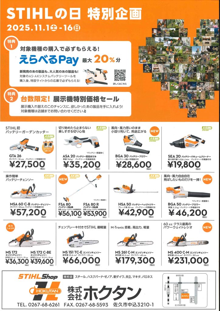 長野県佐久市でチェーンソー、薪割機など林業機械・草刈り機や農機具など機械の販売・修理なら株式会社ホクタンにお任せください。